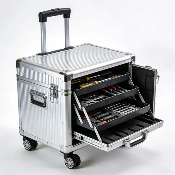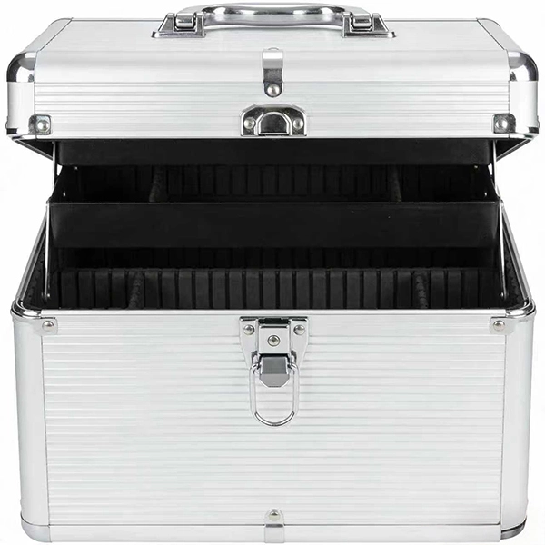 Professional Aluminum Tool Organizer CaseA professional-grade aluminum tool case with multi-compartment interior for systematic organization.