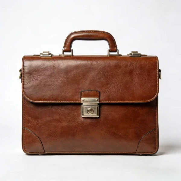 Premium Leather Briefcase with Metal HardwareA high-end leather briefcase featuring polished metal hardware and refined finishes for executive sophistication.