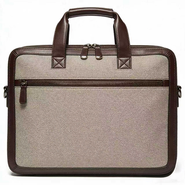 A refined nylon briefcase featuring tasteful leather trim, merging durability with subtle elegance.