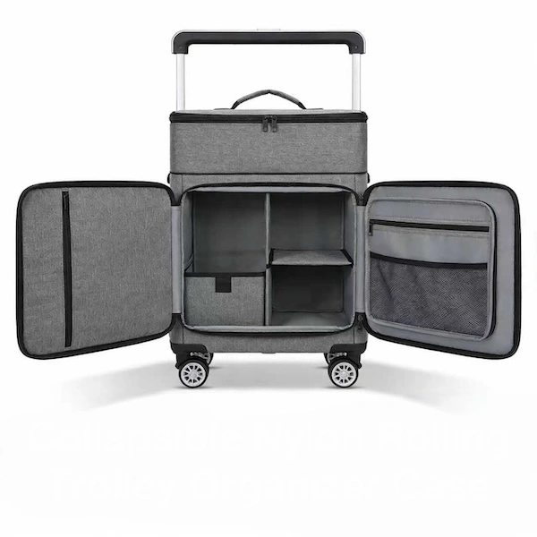 Collapsible Nylon Rolling Trolley Organizer CaseCollapsible nylon rolling trolley organizer case: waterproof & foldable, with swivel wheels and telescopic rod, perfect for home, office & travel storage.