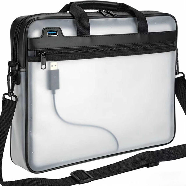 Waterproof Briefcase with USB Charging PortA modern waterproof briefcase featuring an integrated USB charging port for on-the-go device power.